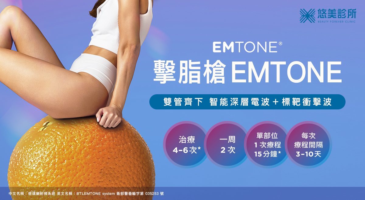 | 8.非侵入性EMTONE (俗稱擊脂槍)橘皮紋治療優勢EMTONE 擊脂槍 橘皮 妊娠紋 皺紋 鬆弛 水腫 代謝 體雕 減脂 產後治療 |