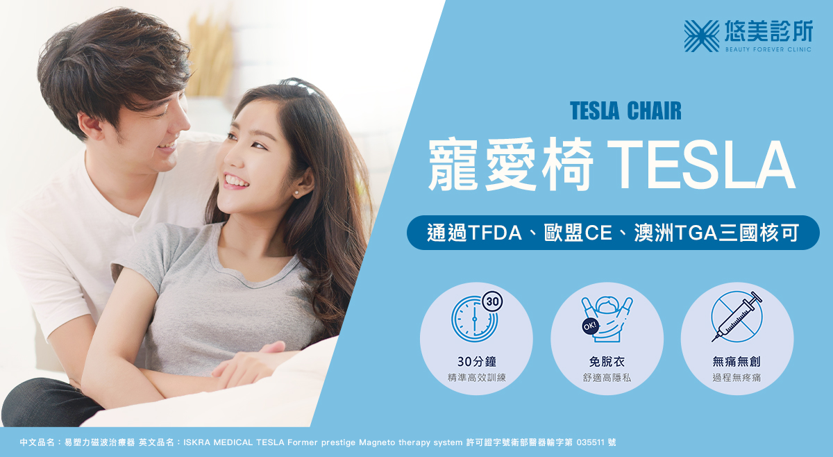 "ISKRA MEDICAL"易塑力磁波治療器「TESLA Former治療椅,俗稱寵愛椅」(衛部醫器輸字第035511號) 通過TFDA、歐盟CE、澳洲TGA三國核可,採用FMS高頻磁波科技,坐著30分鐘,深層肌肉高效收縮,精準鍛鍊盆底肌群,效果可維持6個月,改善95%尿失禁。